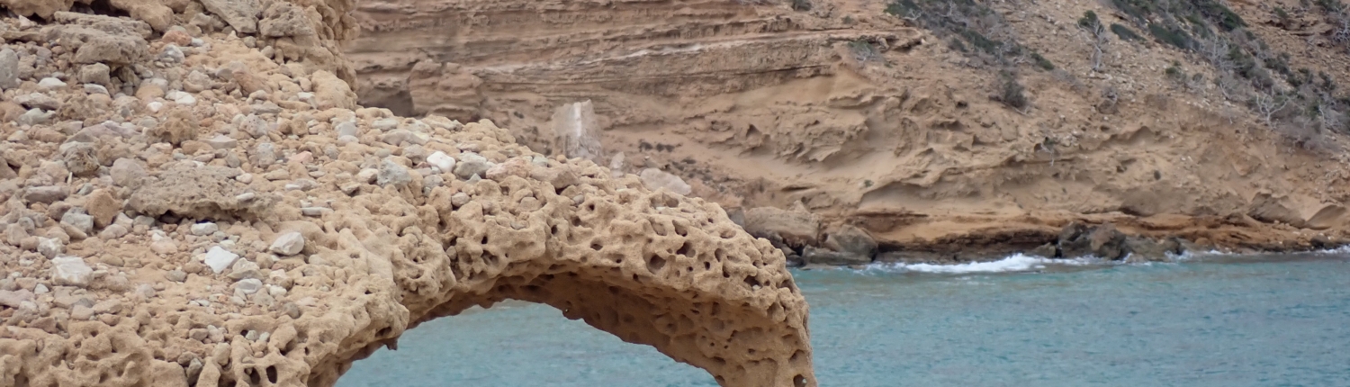 Gavdos lies in the Lybian Sea (25 E; 36 N) and covers a surface of 33 sq. kilometres. Two thirds of the island is covered by Neogene sediments (conglomerates, sands, marls, sandstones and marly limestones) and Quaternary sediments (Pleistocene limestones, calcareous sandstone, aeolianites, sands and sand-dunes and fossil rich sea terraces (Bottema et al, 2003).